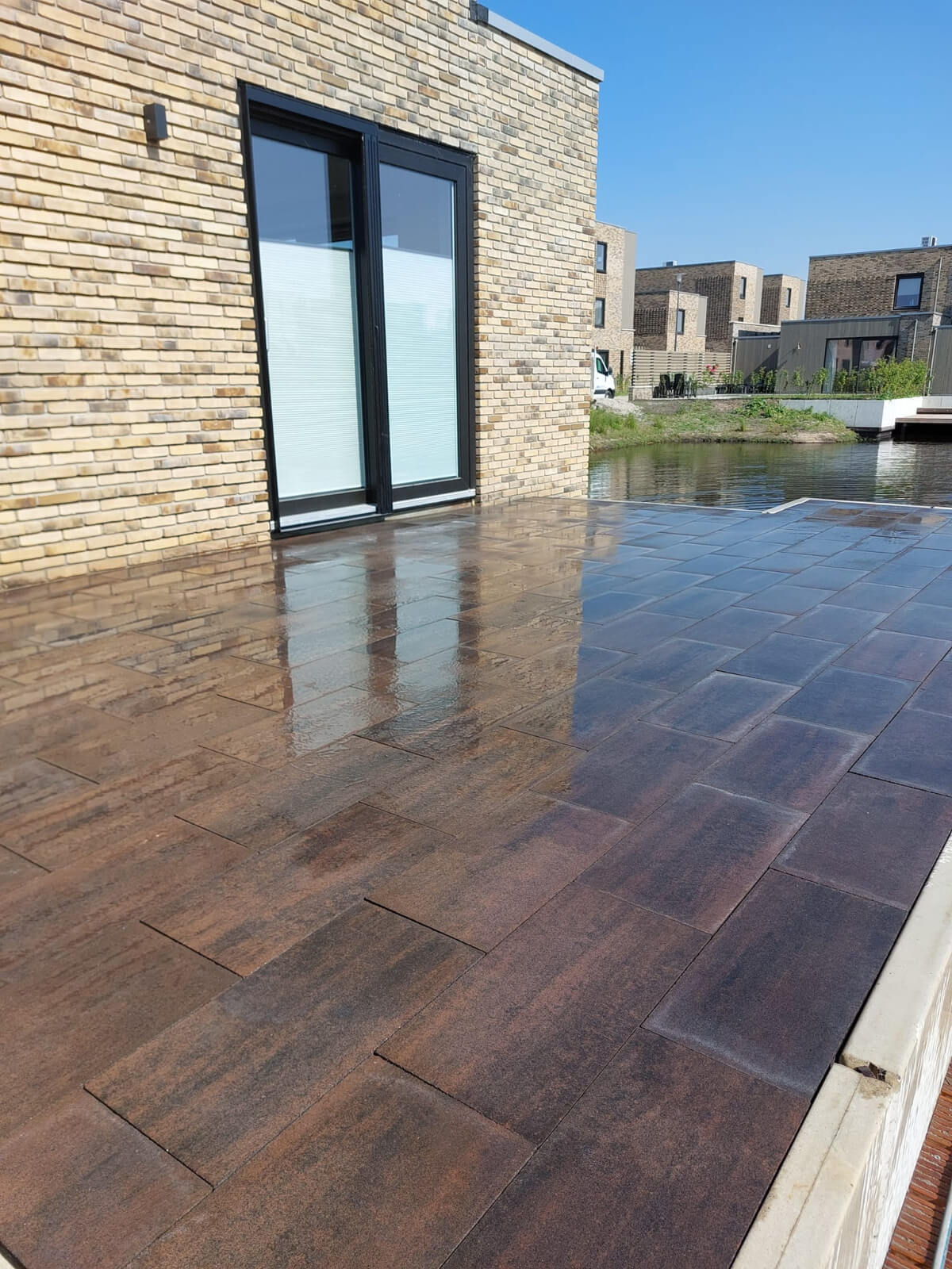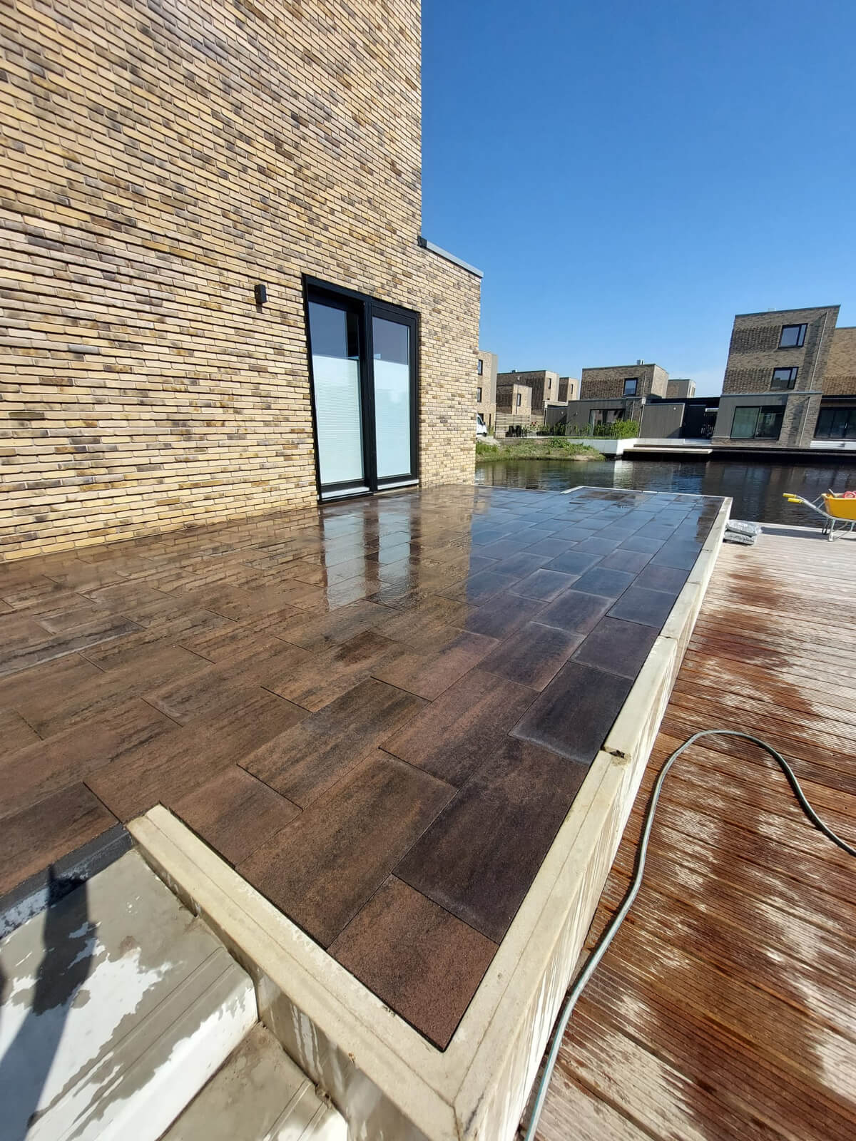 In Heerenveen een uitdagende klus afgerond. Met behulp van een mobiele torenkraan hebben wij hier het grondwerk gedaan. Door een smalle doorgang langs het water was dit de beste oplossing. De torenkraan heeft de minikraan in de achtertuin gezet en doormiddel van een klein containerbakje is de zwarte grond afgevoerd en het zand ingevlogen. De tegels zijn ook gelijk in de tuin gezet zodat wij daar maandag gelijk konden straten.